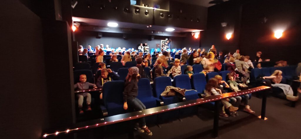 Der Kinosaal stand exklusiv für diese Veranstaltung zur Verfügung. Damit auch alle Kinder ihren Sitzplatz bekamen, hatten sich die meisten Eltern ins Foyer des Kinos in „Warteposition“ begeben. Die Jüngsten wurden natürlich begleitet und auch die Mitglieder des PWV assistierten bei der Betreuung. Vor Beginn des Films hatten sich die meisten mit Popcorn und Getränken eingedeckt. Sophie Schwechheimer als Moderatorin der Veranstaltung begrüßte die Kinder und sogleich öffnete sich der Vorhang und der mit Spannung erwartete Film konnte beginnen. Die volle Aufmerksamkeit der Kinder und ausgiebiges Gelächter bei zahlreichen Passagen machte schnell deutlich, dass die Organisatoren mit ihrer Filmauswahl ins Schwarze getroffen hatten.